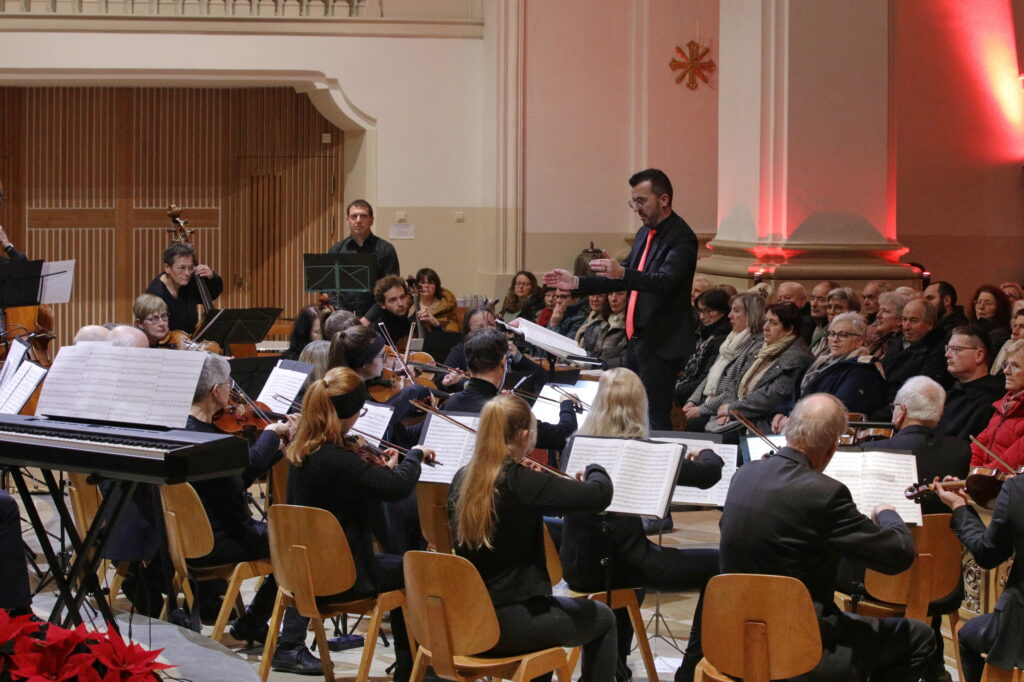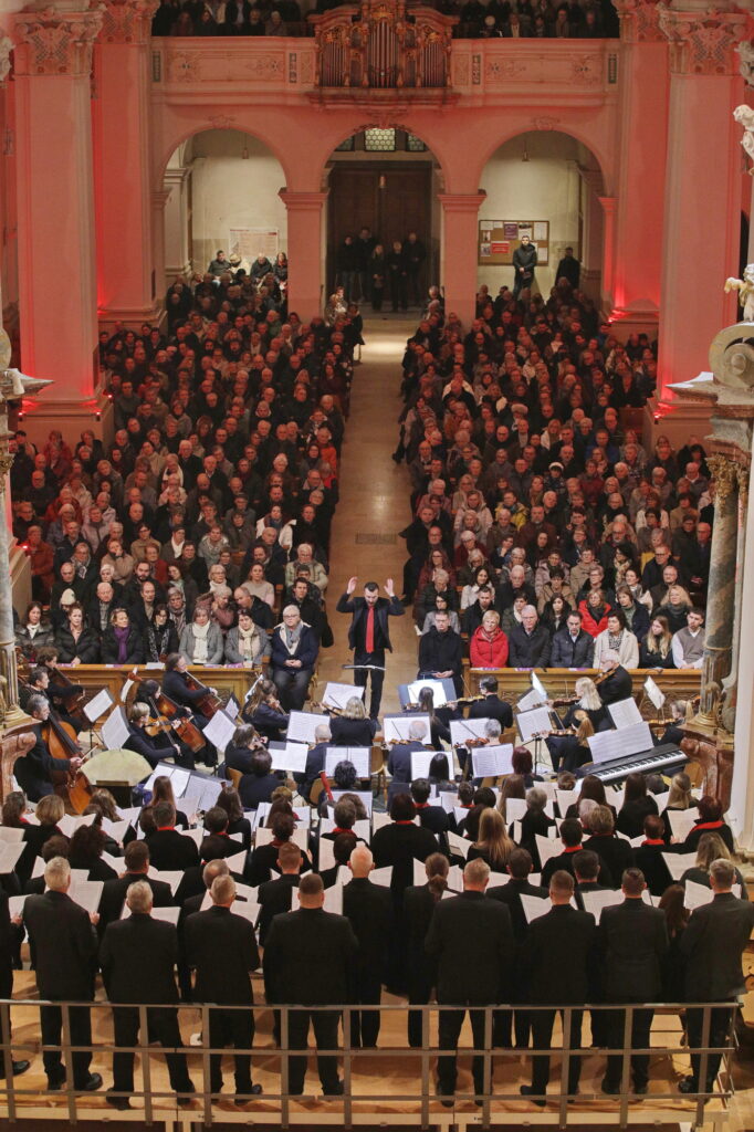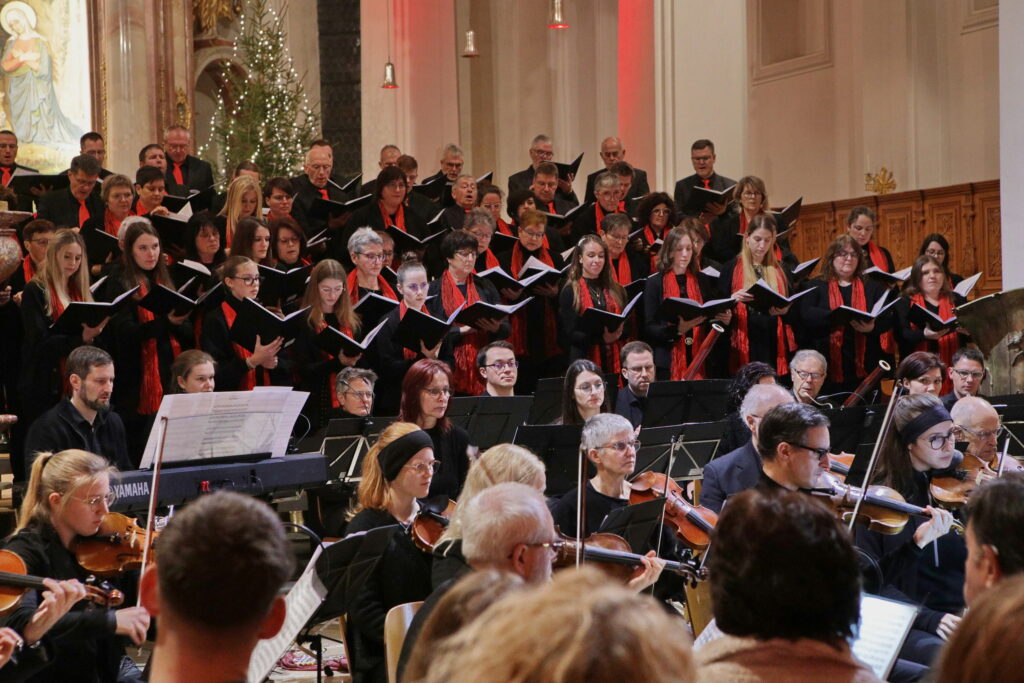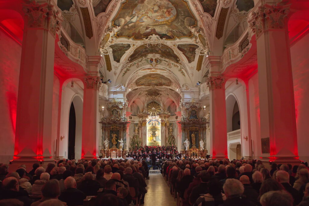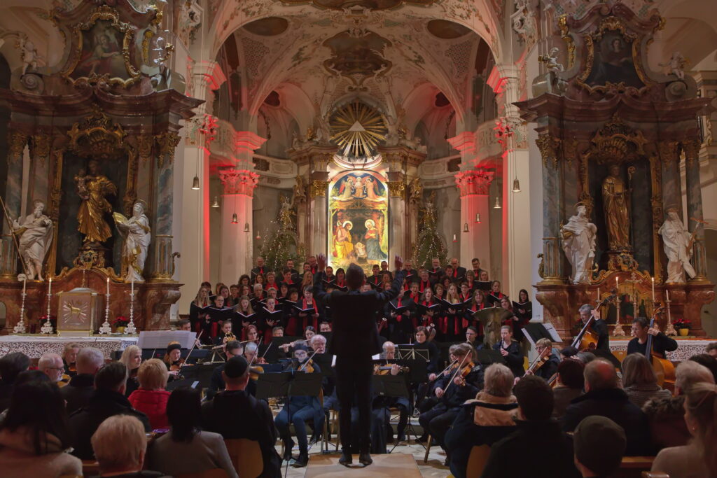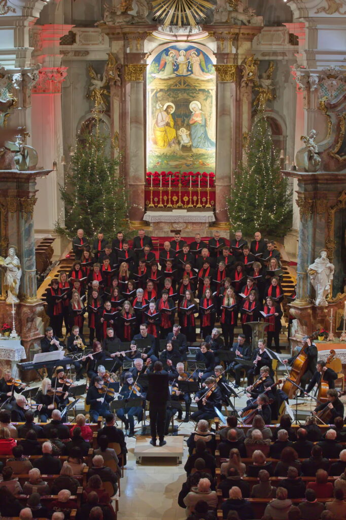 Am 28. Dezember 2025 fand unser Weihnachtskonzert in der stimmungsvollen Abteikirche in Beuron statt. Zur Aufführung kam die Pastoralmesse in F (Op. 147) von Anton Diabelli und die Weihnachtskantate „Vom Himmel hoch“ von Felix Mendelssohn-Batholdy. Unterstützt wurden wir von einem Projektorchester, mit Instrumentalisten aus der Region.