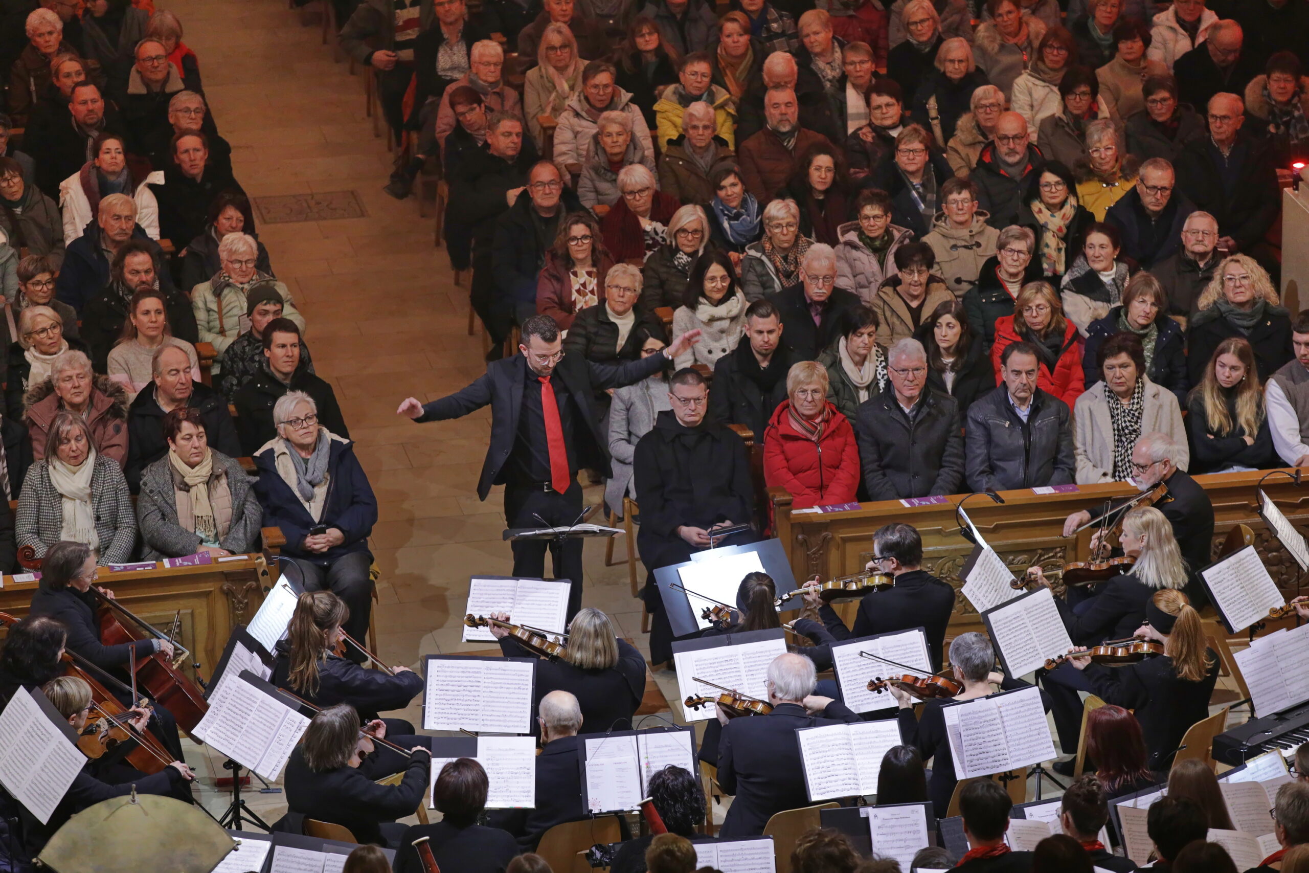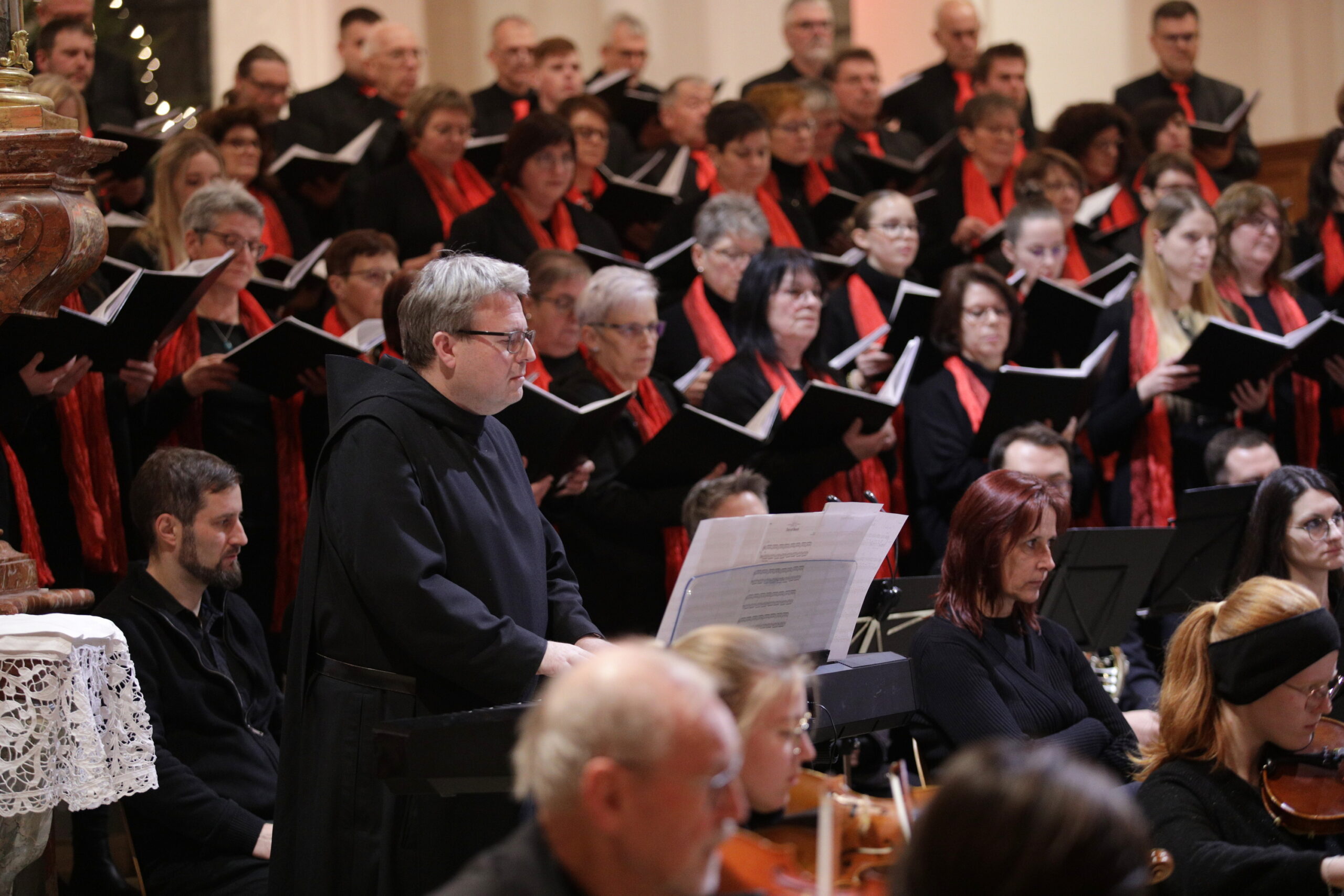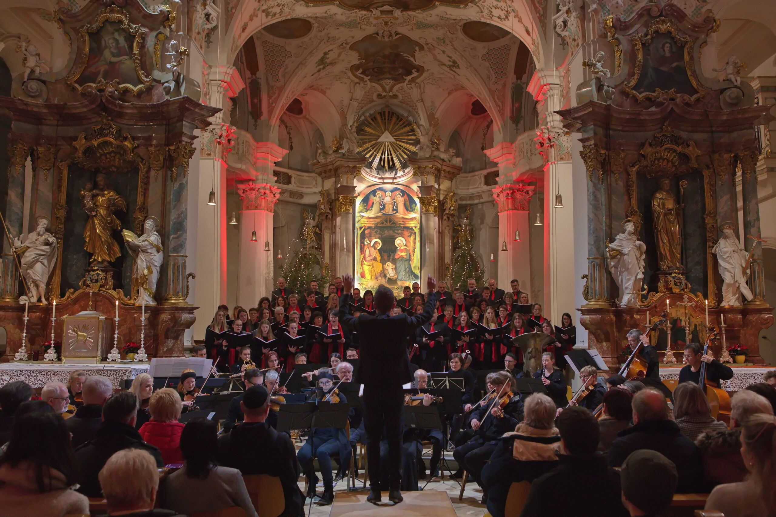 Am 28. Dezember 2025 fand unser Weihnachtskonzert in der stimmungsvollen Abteikirche in Beuron statt. Zur Aufführung kam die Pastoralmesse in F (Op. 147) von Anton Diabelli und die Weihnachtskantate „Vom Himmel hoch“ von Felix Mendelssohn-Batholdy. Unterstützt wurden wir von einem Projektorchester, mit Instrumentalisten aus der Region.